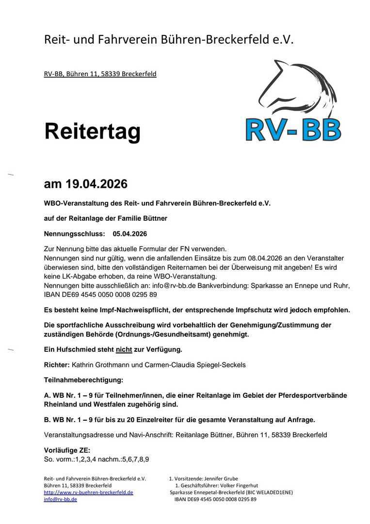Der Reit- und Fahrverein Bühren-Breckerfeld e.V. wurde 1978 gegründet und hat heute ca. 190 Mitglieder in allen Altersklassen.